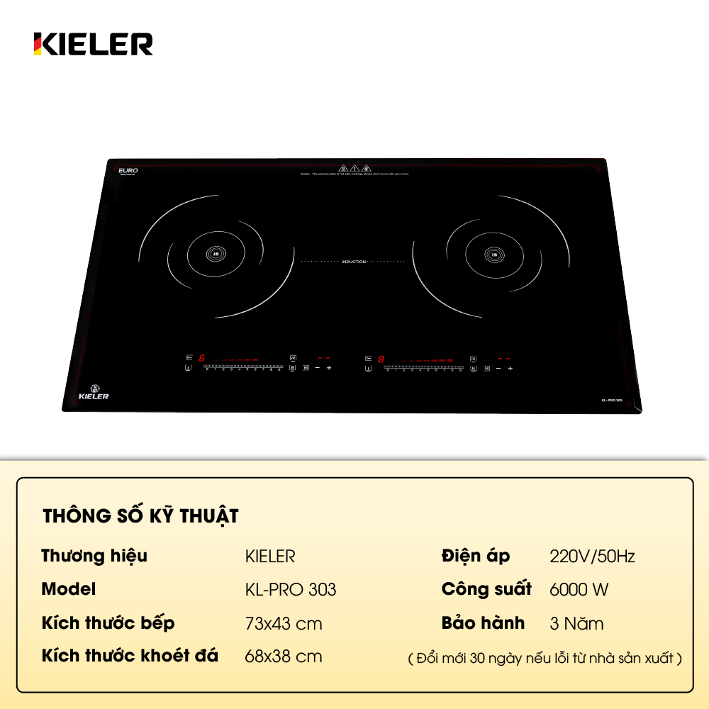 Kieler Kieler KL – Pro 303 gồm 2 vùng nấu chuyên dụng đều là mặt bếp từ giúp việc nấu ăn trở nên nhanh chóng và tiết kiệm thời gian hơn.